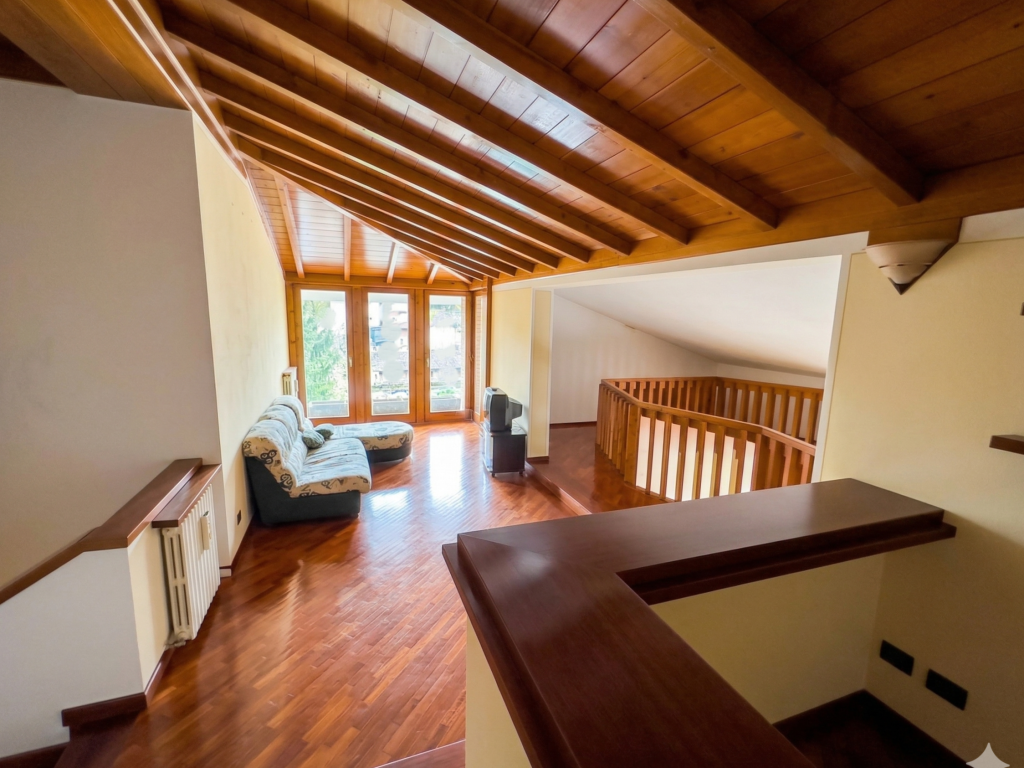RIF. IM-3405. VIC. CASINA: Villa abbinata a due passi da Casina con ampi spazi e giardino: piano terra con ingresso, ripostiglio, cucina abitabile, due portici, soggiorno con camino e vista sul verde, zona notte con tre camere, bagno e balcone; piano primo con studio/salotto, bagno e ripostiglio; piano seminterrato con grande taverna/monolocale, camera, bagno, ripostiglio e area esterna privata pavimentata e verde; completa la proprietà un ampio garage/magazzino.